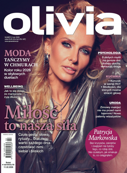 Olivia inspiruje i doradza, prezentując Ci najnowsze i najgorętsze trendy w modzie, urodzie, designie i stylu życia. Specjalnie dla Ciebie, w każdym wydaniu miesięcznika Dorota Szelągowska, z dużą dawką humoru, pisze o tym, co w życiu jest ważne a Bartek Kieżun opisuje rzeczywistość widzianą męskim okiem. W czasopiśmie prezentujemy co miesiąc rubrykę Temat na czasie - o ważnym problemie społecznym oraz nowy dział Wellbeing, gdzie podpowiadamy Ci, jak uzyskać równowagę w zabieganym życiu. Magazyn Olivia możesz zamówić online - znajdziesz w nim wszystkio, co dotyczy najważniejszych dla Ciebie spraw: rodziny, relacji z innymi, dbania o siebie i najbliższych, a także mnóstwo inspiracji wnętrzarskich i kulinarnych (w tym także przepisy wege).