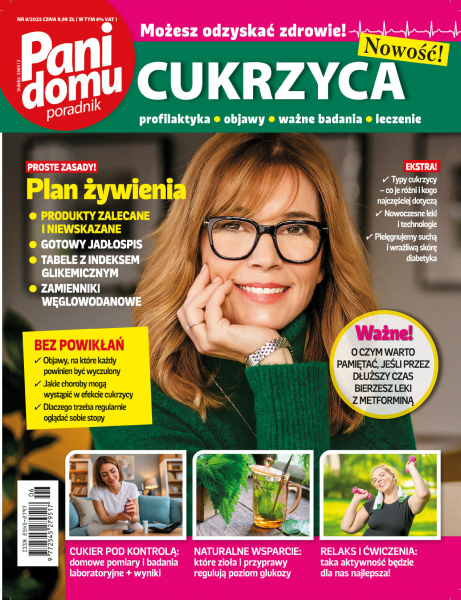 W magazynie Pani Domu Poradnik Cukrzyca czytelnicy znajdą niezbędne informacje na temat nowoczesnych badań i testów, różnych typów cukrzycy, najnowszych metod terapii oraz wskazówki dotyczące stylu życia, diety i pielęgnacji wrażliwej skóry wraz z kosmetykami dla diabetyków. Wydanie zawiera również plan ratunkowy, czyli skuteczny program mądrego odchudzania i wyrównania glukozy we krwi oraz informacje jak wybrać najlepszy glukometr wraz kursem samodzielnego pomiaru poziomu cukru we krwi. Nowością jest także przydatny plan żywieniowy wraz z informacją o produktach zalecanych i niewskazanych, a także tabele z indeksem glikemicznym produktów i wymiennikami węglowodanowymi.