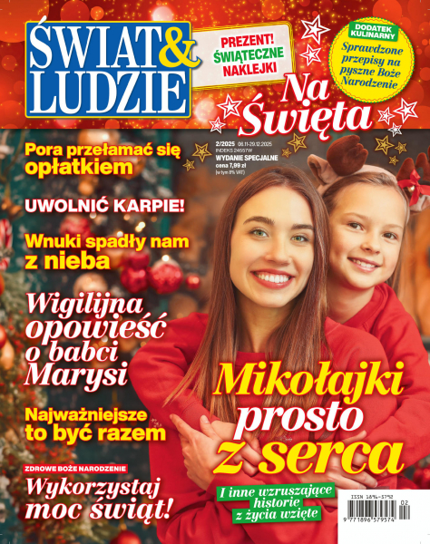 Świat i Ludzie Wydanie Specjalne Na Święta to wyjątkowy numer, pełen poruszających historii z życia wziętych, utrzymanych w ciepłym, świątecznym klimacie. Opowieści te umilą czas oczekiwania i wprowadzą Czytelników w bożonarodzeniowy nastrój. W wydaniu znajdzie się również aż 10 stron kulinarnego dodatku z przepisami na: tradycyjne wigilijne potrawy, wykwintne dania na rodzinne spotkania, klasyczne bożonarodzeniowe ciasta i pomysłowe desery na zakończenie uroczystego dnia.